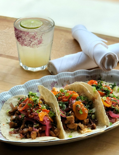 Large Plates (add brunch potatoes for $3): Brunch Fried Rice - crisp chicken, pulled pork, pickled veg salad, scrambled eggs | Breakfast Tacos - Chicken chorizo scramble, avocado, cilantro, pickled veg | Chicken & Waffle - Fried Chicken, honey butter, green onion, sriracha honey maple syrup | Craft Chilaquiles - Carnitas, salsa verde, pico, cotija, crema, sunny egg