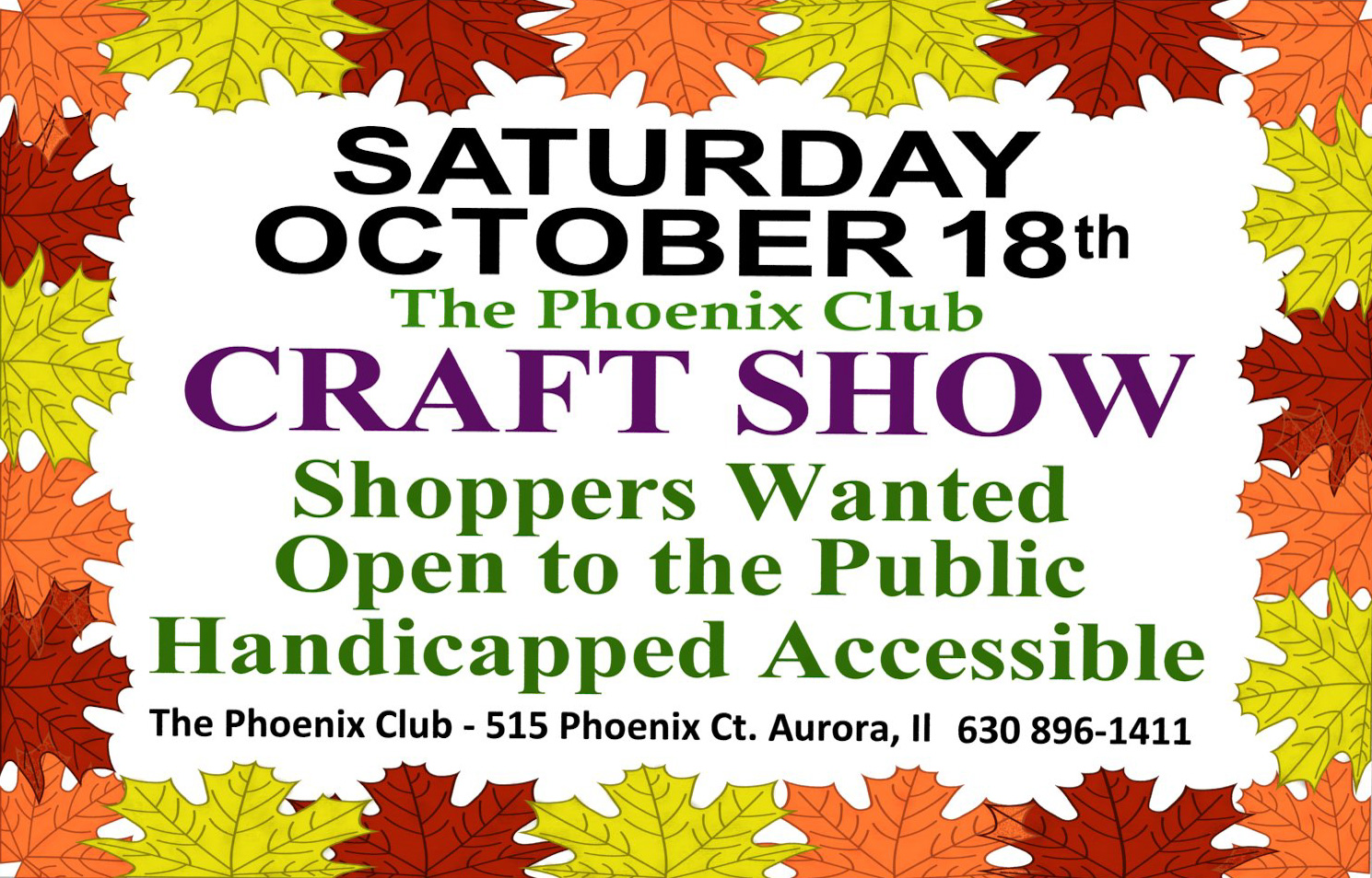 Join us at The Phoenix Club Craft Show on Saturday, October 18th.